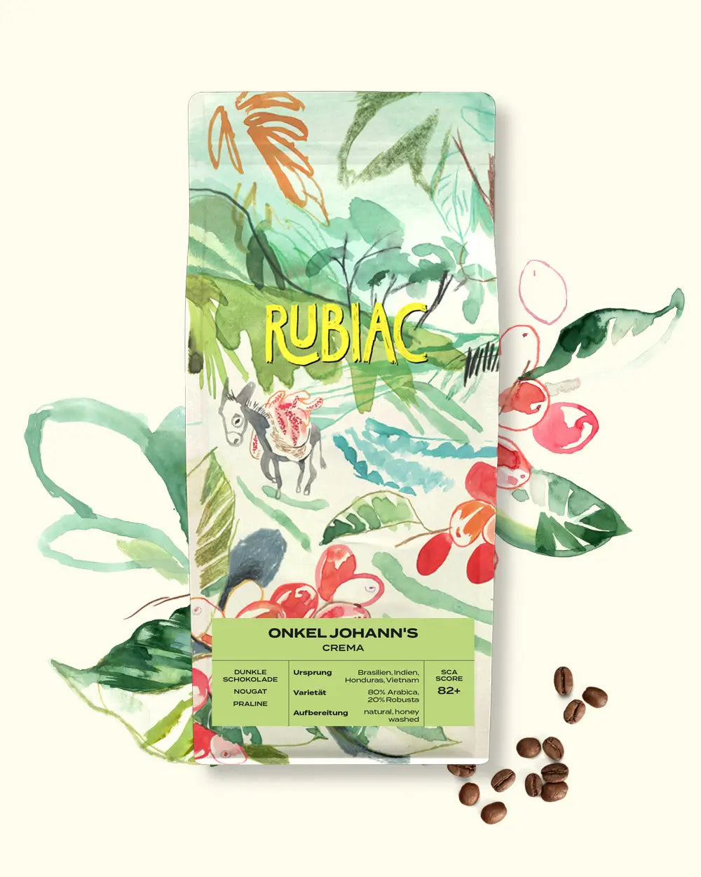 Onkel Johann’s ist unser klassischer Blend für Liebhaber milder, runder Kaffees mit feiner Süße. Die Bohnen stammen aus Brasilien, Indien, Honduras und teils Kenia – angebaut auf 900–1.800 m Höhe von kleinen Produzenten. Alle Blends sind 100 % Arabica und werden entweder natürlich oder im Honey Process aufbereitet.