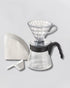 Das Set enthält alles, was du brauchst, um deinen Kaffee auf die bestmögliche Weise zuzubereiten: den Hario V60 Clear 02 Handfilter aus robustem Acryl, eine passende Glaskanne mit Deckel, um den Kaffee warm zu halten, sowie Filterpapiere.