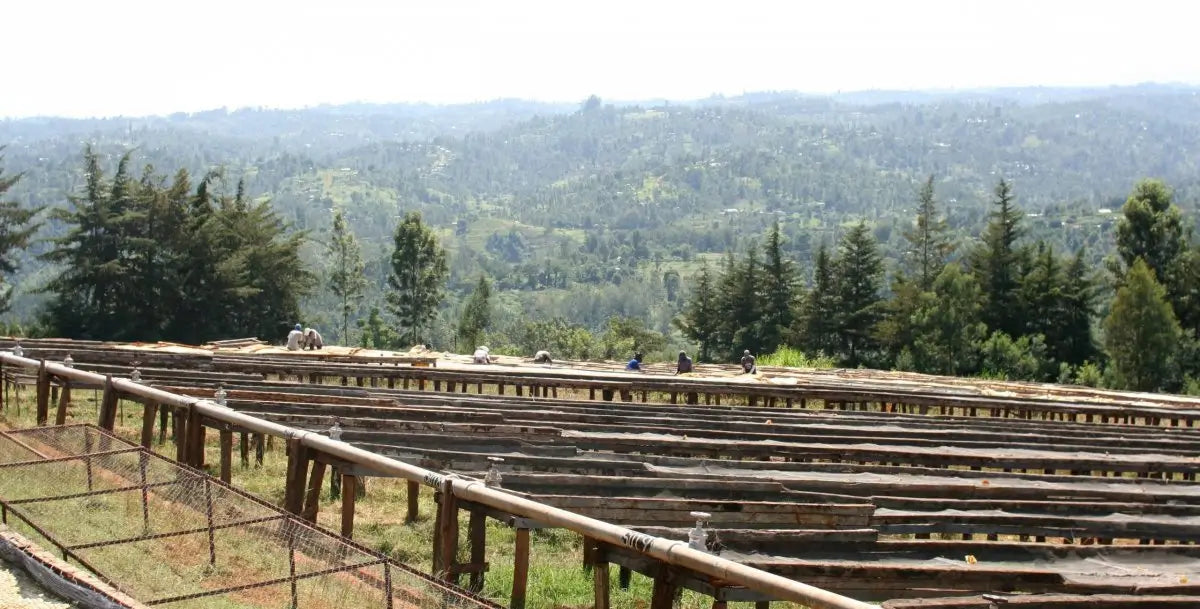 Die Karogoto Coffee Factory liegt in der Nähe von Karatina in Nyeri, Kenia, auf etwa 1.708 Metern Höhe. Sie gehört zur Tekangu-Kooperative, die vier Wet Mills in der Region betreibt. Die vulkanischen Böden, das milde Klima und die sorgfältige nasse Aufbereitung („fully washed“) verleihen den Kaffees aus Nyeri ihre weltberühmte Qualität. Die Region gilt als das Herzstück des kenianischen Kaffeeanbaus.