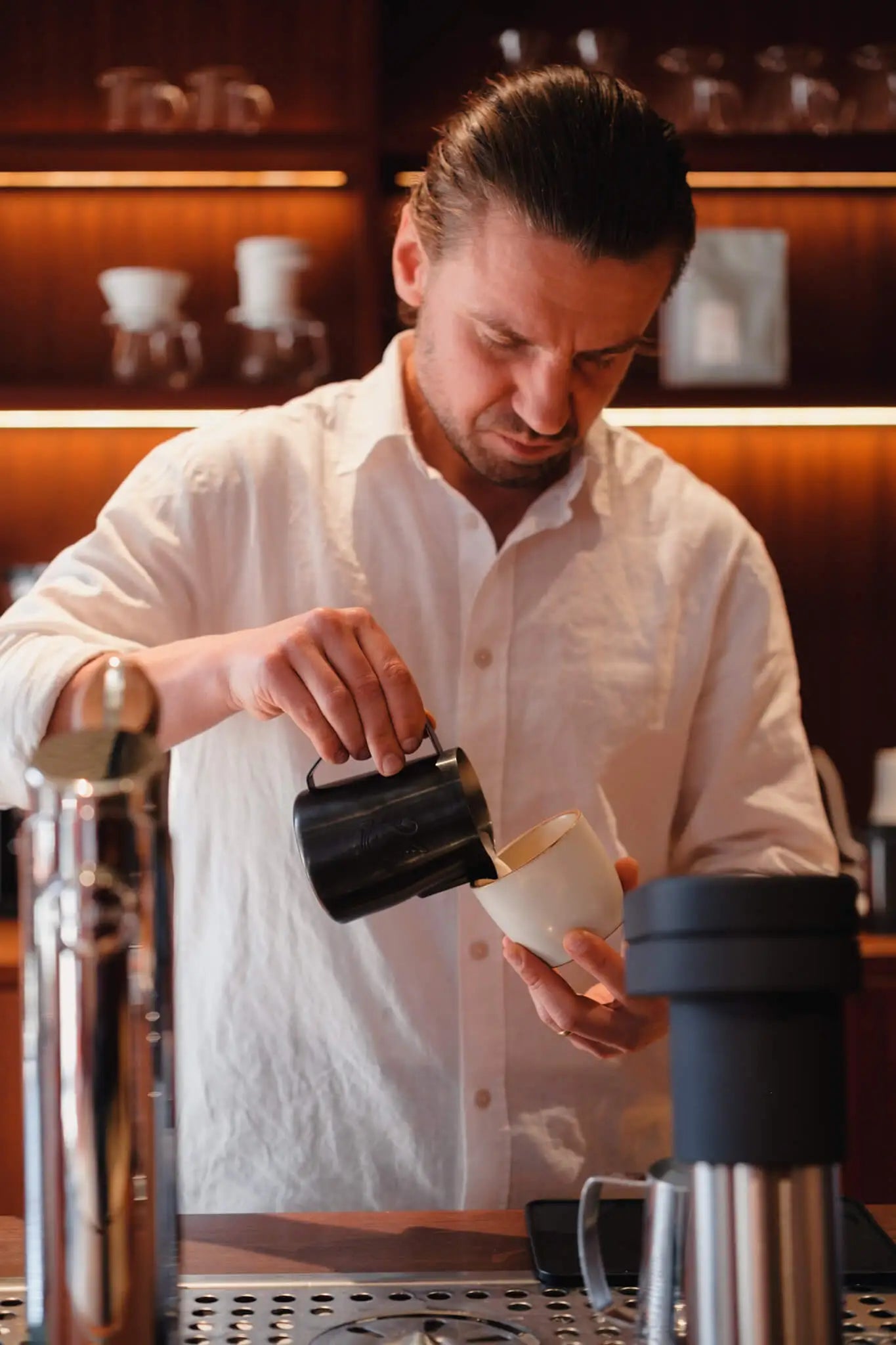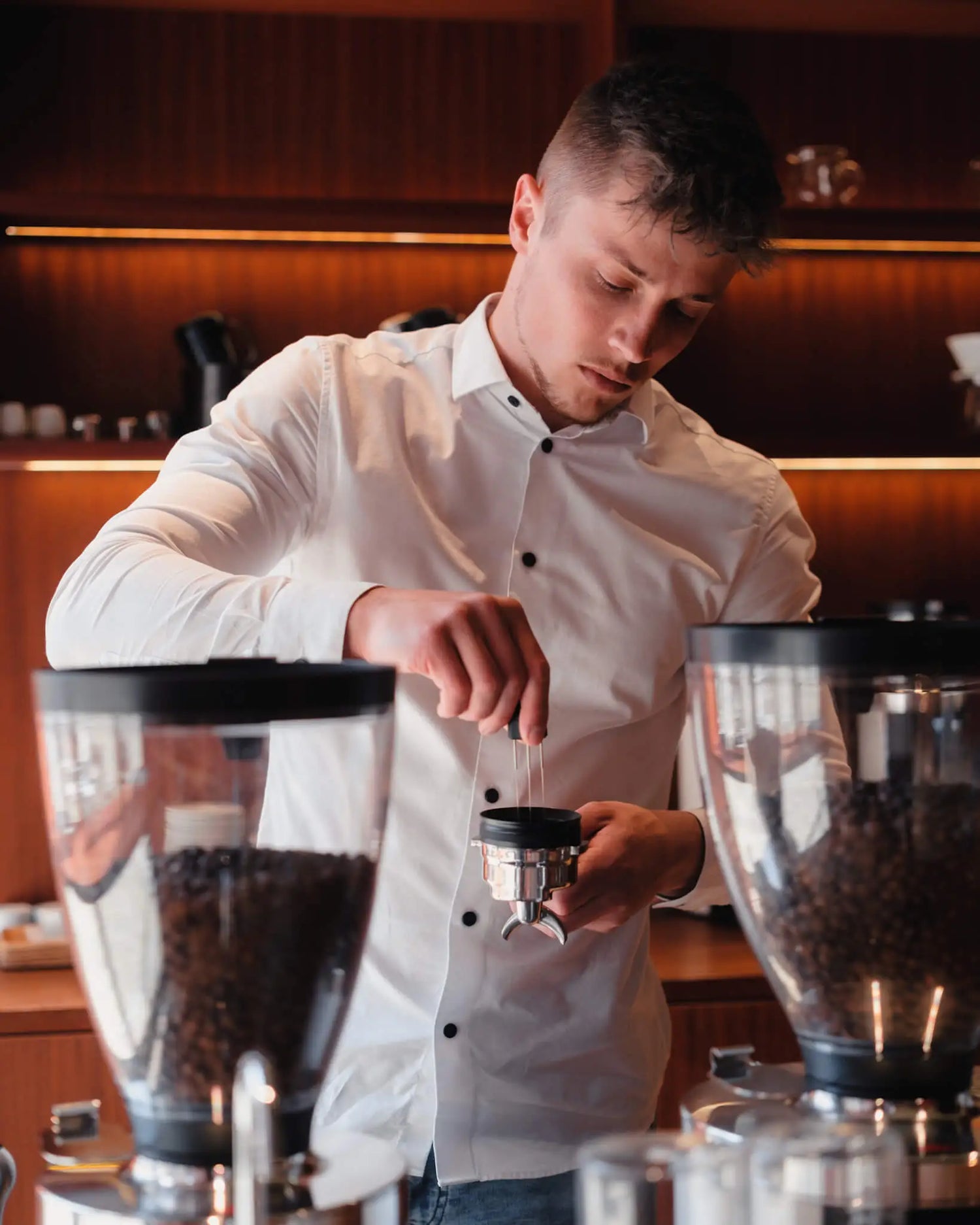 Ihre Begeisterung für Kaffee und ihr fundiertes Wissen über Spezialitätenkaffee teilen sie mit euch, stets im Einklang mit unserer Überzeugung, dass Kaffee für alle zugänglich sein sollte. Es bereitet ihnen Freude, euch mit jedem zubereiteten Kaffee zu begeistern. Dabei liegt ihnen besonders am Herzen, dass sich jeder Gast wohlfühlt und gerne wiederkommt. Ihre Leidenschaft und Hingabe spiegeln sich in jedem Kaffee wider, den sie für euch zubereiten.