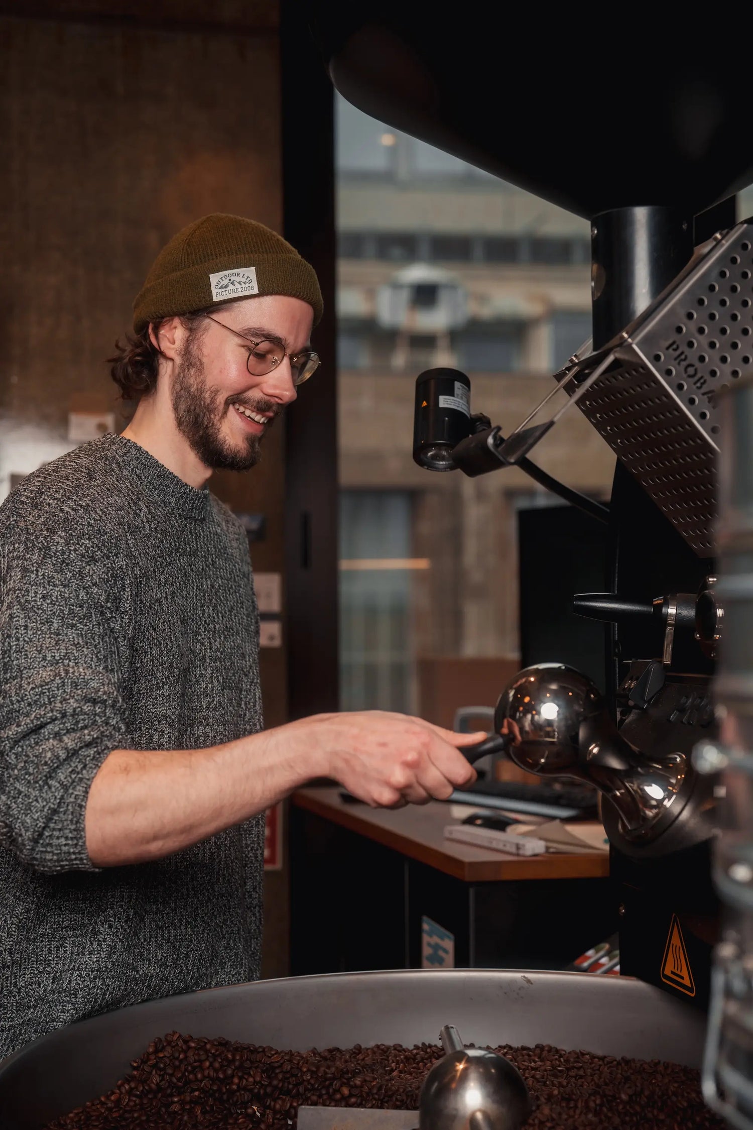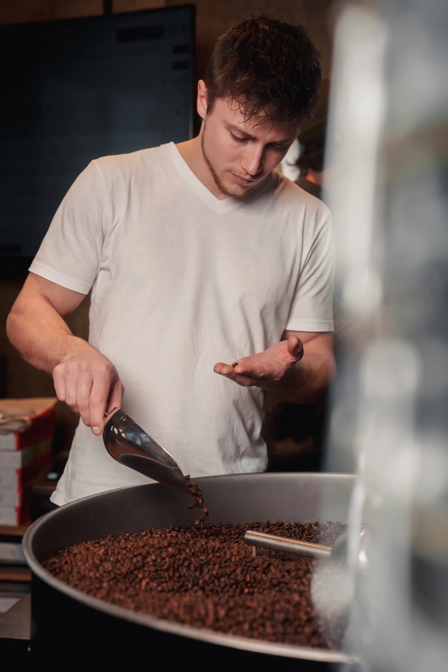 Tobias unterstützt bei der Röstung und Überwachung der Kaffeebohnensorten, führt Röstversuche durch und gewährleistet die Konsistenz der Röstprofile.
