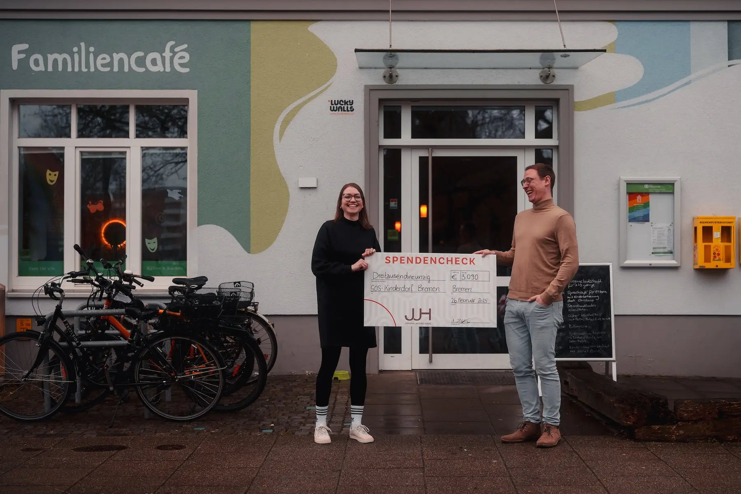 Dank eurer Treue und eurer Unterstützung für den SOS-Kinderdorf Kaffee konnten wir nun den Spendencheck für 2024 in Höhe von 3.090 € an das SOS-Kinderdorf Bremen überreichen. Diese Summe setzt sich aus den Erlösen des vergangenen Jahres zusammen und fließt direkt in wichtige Projekte, die Kindern und Familien in Bremen ein sicheres Zuhause und bessere Zukunftsperspektiven bieten.